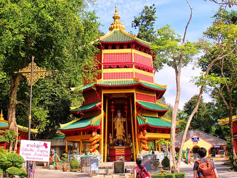ความเป็นมา : ชื่อวัดนั้นมีข้อสันนิษฐานว่าเนื่องจากในอดีตเคยมีเสืออาศัยอยู่ และภายในถ้ำยังปรากฏหินธรรมชาติ เป็นรูปแบบของอุ้งเท้าเสือ มีทัศนียภาพก็รื่นรมย์แวดล้อมด้วยต้นไม้ใหญ่ อายุนับร้อยนับพันปีเนื่องจากมีเขาล้อมอยู่ทุกด้าน บริเวณนี้นอกจากเป็นสถานที่วิปัสสนาแล้ว ยังเป็นแหล่งโบราณคดีที่สำคัญถึงสองสมัยคือ สมัยก่อนประวัติศาสตร์ และสมัยแรกเริ่มประวัติศาสตร์ มีการขุดพบวัตถุโบราณหลายอย่าง เช่น เครื่องมือหิน เศษภาชนะดินเผา พระพิมพ์ดิบ สิ่งสำคัญในวัดคือ เจ้าแม่กวนอิม ซึ่งมีความสูงใหญ่กว่า 5 เมตรที่ตั้งประดิษฐานอยู่ภายในวัด และการเดินพิชิตบันได 1200 ขั้นเพื่อขึ้นสักการะพระธาตุเจดีย์ระฆังใหญ่