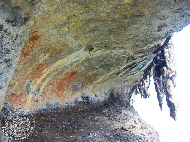 ความเป็นมา : ตั้งอยู่อยู่ที่แหลมไฟไหม้ บ้านไสโต๊ะคำ ตำบลแหลมสัก อำเภออ่าวลึก เป็นภาพบนเพิงผาในภูเขาหินปูน ที่ยื่นออกไปในทะเลเล็กน้อย สภาพแวดล้อมเป็นป่าชายเลนมีไม้จำพวกแสมโกงกาง และตะบูน รอยบากที่มีภาพเขียนยาวประมาณ ๙ เมตร กว้างประมาณ ๕ เมตร สูงประมาณ ๓.๕๐ เมตร เป็นรูปคนและสัตว์ เขียนด้วยสีแดงและสีดำอยู่ทั่วไป มีภาพอื่น ๆ บ้างแต่ไม่ชัดเจน สีของภาพเลือนไปกับสีของผนังปูน จึงไม่สามารถเห็นชัดว่าเป็นรูปอะไร อย่างไรก็ตามพอจะแบ่งประเภทของภาพได้ดังนี้