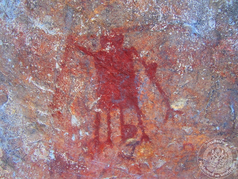 ภาพคน ระบายสีแดงทึบทั้งหมด เป็นภาพที่เด่นที่สุดของแหล่งนี้ รูปลักษณะคล้ายคนสองคนยืนติดกัน มี ๒ ศีรษะค่อนข้างชัด เห็นแขนเพียง ๒ แขน เห็นขาครบ ๔ ขา ขนาดภาพสูงประมาณ ๕๐ เซ็นติเมตร