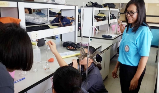 ครูวิมลรัตน์ หาญณรงค์ ครู ชำนาญการพิเศษกลุ่มสาระการเรียนรู้วิทยาศาสตร์ โรงเรียนเฉลิมขวัญสตรี นำนักเรียนโครงการห้องเรียนพิเศษวิทยาศาสตร์ ปฏิบัติการตรวจสอบ วิเคราะห์สารเคมีด้วยการไทเทรต โดยมีคณะผู้เชี่ยวชาญของมหาวิทยาลัยราชภัฏพิบูลสงคราม พิษณุโลก ดร.รพิพรรณ จันทร์มะณี,อาจารย์พดารัตน์ นิลเจียรนัย พร้อมด้วยเจ้าหน้าที่นางสาวนุจรินทร์ อินทร์งาม ให้ความรู้และอำนวยความสะดวกในการเรียนรู้ปฏิบัติการครั้งนี้ ณ ห้องปฏิบัติการเคมี คณะวิทยาศาสตร์ มหาวิทยาลัยราชภัฏพิบูลสงคราม พิษณุโลก เมื่อวันที่ 19 กันยายน 2558 (ภาพ:วิมลรัตน์/ข่าว:ประชาสัมพันธ์)