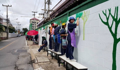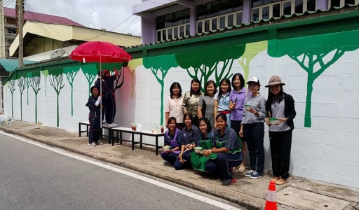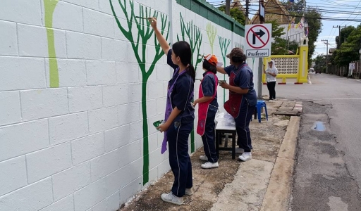 กิจกรรมศิลปะจิตอาสา วาดภาพผนังรั้วโรงเรียนเฉลิมขวัญสตรี โดยนักเรียนและครูโรงเรียนเฉลิมขวัญสตรี เมื่อวันที่่ 9 ตุลาคม 2558 โดยมี ดร.จิตราภรณ์ ใยศิลป์ ผู้อำนวยการโรงเรียนเฉลิมขวัญสตรี พร้อมด้วยคณะครูร่วมให้กำลังใจคณะครูและนักเรียน ณ บริเวณผนังรั้วโรงเรียนเฉลิมขวัญตรี (ภาพ:สุนทรี/ข่าว:ประชาสัมพันธ์)