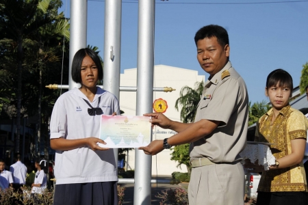 นายวีระพนธ์ คำดี รองผู้อำนวยการโรงเรียนพิชัย มอบเกียรติบัตรและแสดงความยินดีกับนักเรียนที่เข้าร่วมการแข่งขันในงานศิลปหัตถกรรมนักเรียน ครั้งที่ 65 ปีการศึกษา 2558 ของกลุ่มสาระการเรียนรู้วิทยาศาสตร์ กลุ่มสาระการเรียนรู้สังคมศึกษา ศาสนาและวัฒนธรรม และกิจกรรมพัฒนาผู้เรียน ในวันจันทร์ที่ 23 พฤศจิกายน 2558 ณ บริเวณหน้าเสาธงโรงเรียนพิชัย โดยจัดการแข่งขันฯ ระหว่างวันที่ 7 -8 พฤศจิกายน 2558 ณ โรงเรียนอุตรดิตถ์ดรุณีและโรงเรียนอุตรดิตถ์ที่ผ่านมา