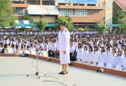ดร.จิตราภรณ์ ใยศิลป์ ผู้อำนวยการโรงเรียนเฉลิมขวัญสตรี พร้อมด้วยข้าราชการครู บุคลากรและนักเรียนโรงเรียนเฉลิมขวัญสตรี ร่วมพิธีถวายพระพรเนื่องในวโรกาสมหามงคลเฉลิมพระชนมพรรษาพระบาทสมเด็จพระเจ้าอยู่หัว ณ สนามหน้าเสาธงโรงเรียนเฉลิมขวัญสตรี เมื่อวันที่่ 3 ธันวาคม 2558 (ภาพ:อดิเรก/ข่าว:ประชาสัมพันธ์)
