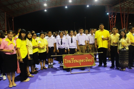 นายกิตติศักดิ์ สินธุวงศานนท์ รองผู้อำนวยการโรงเรียนอุตรดิตถ์ นำคณะครูและนักเรียนร่วมพิธีจุดเทียนชัยถวายพระพร เนื่องในวโรกาสมหามงคลเฉลิมพระชนมพรรษาพระบาทสมเด็จพระเจ้าอยู่หัว 5 ธันวามหาราช ณ สนามกีฬาหน้าศาลากลางพระยาพิชัยดาบหัก เมื่อวันที่ 5 ธันวาคม 2558 (ประชาสัมพันธ์โรงเรียนอุตรดิตถ์ : ภาพ/ข่าว)