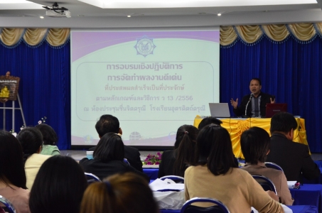 หัวข้อข่าว : การจัดการอบรมเชิงปฏิบัติการจัดทำผลงานดีเด่นที่ประสพผลสำเร็จเป็นที่ประจักษ์ตามหลักเกณฑ์และวิธีการ ว 13/2556