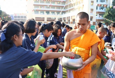 คณะครู บุคลากรและนักเรียนรวมทั้งคณะศิษย์เก่า ร่วมกันตักบาตรทำบุญเนื่องในโอกาสวันส่งท้ายปีเก่า ต้อนรับปีใหม่ ณ สนามหน้าเสาธงโรงเรียนเฉลิมขวัญสตรี เพื่อความเป็นสิริมงคลต่อไป(ภาพ:อดิเรก/ข่าว:ประชาสัมพันธ์)