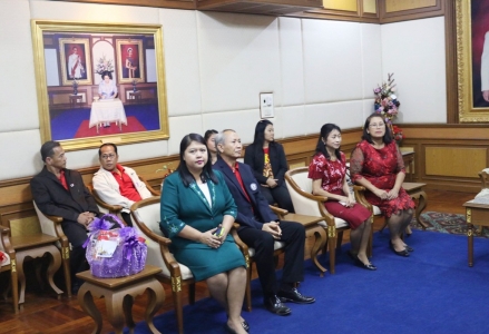 นายศาศวัต ประทุมรัตน์ รองผู้อำนวยการโรงเรียนเฉลิมขวัญสตรี พร้อมด้วยคณะกรรมการบริหารโรงเรียน เข้าพบผู้ว่าราชการจังหวัดพิษณุโลก เพื่ออำนวยพรเนื่องในโอกาสวันขึ้นปีใหม่ ณ ศาลากลางจังหวัดพิษณุโลก (ภาพ:อดิเรก/ข่าว;ประชาสัมพันธ์)