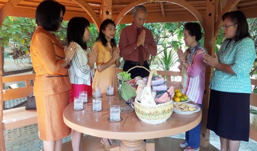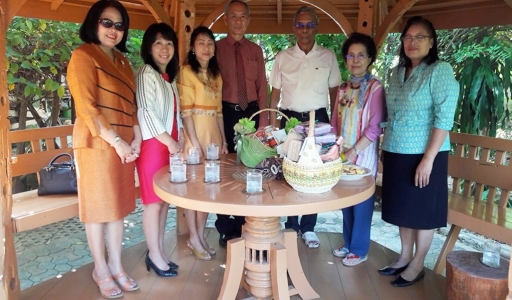 นายศาศวัต ประทุมรัตน์ รองผู้อำนวยการโรงเรียนเฉลิมขวัญสตรี พร้อมด้วยคณะกรรมการบริหารโรงเรียน นำกระเช้าสุขภาพอำนวยพรปีใหม่แด่ ผอ.ประสพศรี เตมียบุตร นายกสมาคมศิษย์เก่าเฉลิมขวัญสตรี เมื่อวันที่่ 29 ธันวาคม 2558 (ภาพ:อดิเรก/ข่าว:ประชาสัมพันธ์)