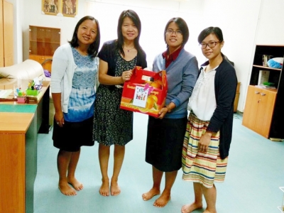 คณะครูโครงการพัฒนาภาษาญี่ปุ่น กลุ่มสาระการเรียนรู้ภาษาต่างประเทศ โรงเรียนเฉลิมขวัญสตรี มอบผลไม้เนื่องในโอกาสวันขึ้นปีใหม่ แด่ ดร.โสภา มะสึนาริ หัวหน้าภาควิชาภาษาญี่ปุ่น คณะมนุษยศาสตร์ และอาจารย์ชาวญี่ปุ่นมหาวิทยาลัยนเรศวร,ผศ.ดร.ณัฏฐิรา ทับทิม และอาจารย์ชาวญี่ปุ่นมหาวิทยาลัยราชภัฎพิบูลสงคราม,ครูติม หัวหน้าศูนย์ฯภาษาญี่ปุ่นโรงเรียนพิษณุโลกพิทยาคม (ภาพ:พีรดา/ข่าว:ประชาสัมพันธ์)