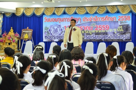 วันที่ 12 มกราคม 2559 นายมนต์ชัย ปาณธูป ผู้อำนวยการโรงเรียนอุตรดิตถ์ดรุณี เป็นประธานในพิธีมอบทุนการศึกษา ให้กับนักเรียนที่มีความขาดแคลนด้านทุนทรัพย์เพื่อนำไปใช้ประโยชน์ในด้านการศึกษาเล่าเรียน โดยจัดพิธีมอบ ณ ห้องประชุมชื่นจิตดรุณี โรงเรียนอุตรดิตถ์ดรุณี //เครือข่ายประชาสัมพันธ์โรงเรียนอุตรดิตถ์ดรุณี ภาพ:ข่าว