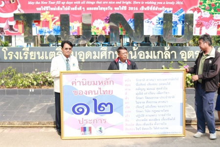 วันพุธที่ 13 มกราคม 2559 นายภวัต ศรีสมบูรณ์ หัวหน้างานประชาสัมพันธ์จังหวัดอุตรดิตถ์ ได้ทำการมอบป้าย ค่านิยม 12 ประการ ให้กับโรงเรียนเตรียมอุดมศึกษาน้อมเกล้า อุตรดิตถ์ เพื่อประชาสัมพันธ์ ค่านิยม 12 ประการ โดยมี นายประมุข ธนวัฒน์ ผู้อำนวยการโรงเรียน ต้อนรับและรับมอบป้าย ณ โรงเรียนเตรียมอุดมศึกษาน้อมเกล้า อุตรดิตถ์