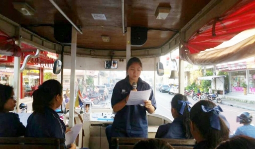 คณะครูผู้สอนรายวิชาภาษาอังกฤษรอบรู้ ชั้นมัธยมศึกษาปีที่่ 2 กลุ่มสาระการเรียนรู้ภาษาต่างประเทศ โรงเรียนเฉลิมขวัญสตรี จัดกิจกรรมเพื่อส่งเสริมทักษะการพูดให้กับนักเรียนด้วยกิจกรรมรถรางนำเที่ยวรอบเมืองพิษณุโลก โดยการให้นักเรียนนำเสนอแหล่งท่องเที่ยวจังหวัดพิษณุโลกเป็นภาษาอังกฤษใช้เวลาประมาณ 1 ชั่วโมงกิจกรรมนี้นักเรียนให้ความสนใจและเรียรู้แหล่งท่องเที่ยวกันอย่างมีความสุข (ภาพ:อดิเรก/ข่าว:ประชาสัมพันธ์)