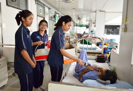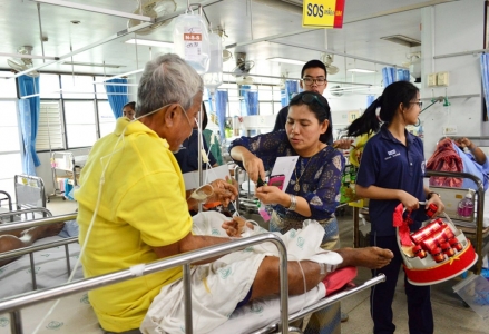คณะกรรมการสภานักเรียน ร่วมกับคณะครูกลุ่มงานกิจกรรมนักเรียนและชุมชน โรงเรียนเฉลิมขวัญสตรี นำเครื่องดื่มบำรุงสุขภาพไปมอบให้กับผู้ป่วยเนื่องในโอกาสวันขึ้นปีใหม่ ณ อาคารหอผู้ป่วยอายุกรรมชายและอายุรกรรมหญิง โรงพยาบาลพุทธชินราช อำเภอเมือง จังหวัดพิษณุโลก เมื่อวันที่่ 5 กุมภาพันธ์ 2559 (ภาพ:กีรติ/ข่าว:ประชาสัมพันธ์)