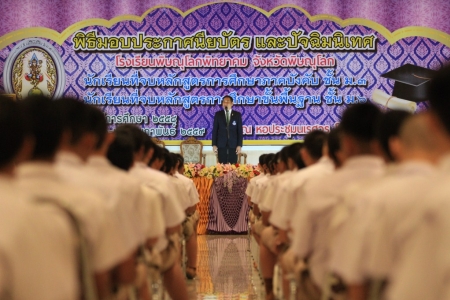 ดร.มานพ เกตุเมฆ ผู้อำนวยการโรงเรียนพิษณุโลกพิทยาคม เป็นประธานพิธีมอบประกาศนียบัตรและปัจฉิมนิเทศ นักเรียนที่จบหลักสูตรการศึกษาภาคบังคับ ชั้นมัธยมศึกษาปีที่ 3 ประจำปีการศึกษา 2558 วันที่ 24 กุมภาพันธ์ 2559 ณ หอประชุมนเรศวร