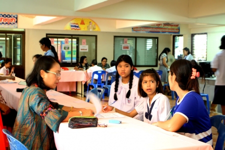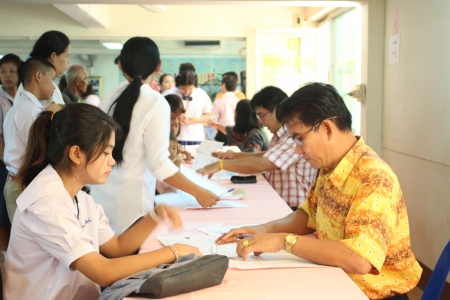 บรรยากาศการรับสมัครนักเรียน ม.1 และ ม.4 ในวันแรก ของโรงเรียนพรหมพิรามวิทยา [โรงเรียนขนาดกลาง ประจำอำเภอ] มีจำนวนผู้สมัคร ม.1 150 คน และ ม.4 106 คน