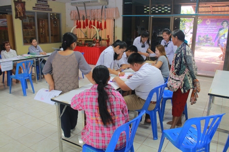 นายเฉลียว คำดี ผู้อำนวยการโรงเรียน ร่วมกับ นายสุพจน์ ต่อสุวรรณ์ รองผู้อำนวยการโรงเรียน ตรวจดูและสอบถามความเรียบร้อยในการรับสมัครนักเรียนชั้นมัธยมศึกษาปีที่ 1 และ 4 ปีการศึกษา 2559 ในระหว่างวันที่ 20 - 24 มีนาคม 2559 ณ ห้องประชุมผาท่าพล โรงเรียนเนินมะปรางศึกษาวิทยา