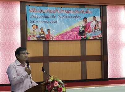 เมื่อวันที่ 4 เมษายน 2559 ผู้อำนวยการโรงเรียนจ่านกร้อง ดร.ช่วยชาติ ตันตระกูล ประธานในพิธีมอบเกียรติบัตรและประดับเข็มให้กับทีมงานและนักเรียนวงโยธวาทิต ที่ได้รับรางวัลรองชนะเลิศ อันดับ 1 ประเภทแปรขบวน Open Division เงินรางวัล 200,000 บาท และรางวัลทุนส่งเสริมความสามารถพิเศษ ระดับเหรียญทอง เงินรางวัล 30,000 ณ ห้องเทคโนโลยีทางการศึกษา โรงเรียนจ่านกร้อง ทั้งนี้มีทีมงานผู้สื่อข่าว จากบริษัท MSS พิษณุโลก และหนังสือพิมพ์ประชามติ มาร่วมถ่ายทำรายการ ภาพ/ข่าว งานประชาสัมพันธ์