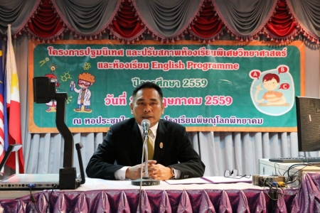 ดร.มานพ เกตุเมฆ ผู้อำนวยการโรงเรียนพิษณุโลกพิทยาคม เป็นประธานพิธีเปิดการปฐมนิเทศและปรับสภาพนักเรียนโครงการห้องเรียนพิเศษวิทยาศาสตร์และห้องเรียนการเรียนการสอนโดยใช้ภาษาอังกฤษเป็นสื่อ English Programme ระดับชั้น ม.1 และ ม.4 โรงเรียนพิษณุโลกพิทยาคม ระหว่างวันที่ 2 4 พฤษภาคม 2559 ณ ห้องประชุมไชยานุภาพ โรงเรียนพิษณุโลกพิทยาคม