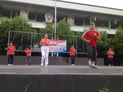 วันที่ 25 พ.ค. 59 นี้ หลังกิจกรรมเคารพธงชาติ กลุ่มสาระฯสุขศึกษาและพลศึกษาได้จัดกิจกรรม ออกกำลังกาย ด้วยการแอโรบิค เนื่องในวันออกกำลังกายโลก หรือ Challenge Day (แชลเลนจ์ เดย์) โดยมีนางวรารัตน์ เกษประสิทธิ์ รองผู้อำนวยการ นำคณะบริหารโรงเรียน ครู บุคลากรและนักเรียนออกกำลังกายกันด้วยความสดชื่น แข็งแรง สนุกสนาน
