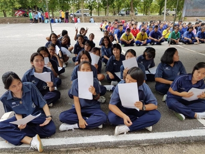 นักศึกษาวิชาทหาร ชั้นปี 1 โรงเรียนเฉลิมขวัญสตรี เข้ารับการทดสอบสมรรถภาพ เพื่อเตรียมความพร้อมในการเรียน ณ สนามกีฬากลาง เมื่อวันที่่ 6 มิถุนายน 2559 โดยมีครูปฐมา เตียวตระกูล เป็นผู้ควบคุมดูแลเข้ารับการทดสอบในครั้งนี้ (ภาพ:ปฐมา/ข่าว:ประชาสัมพันธ์)