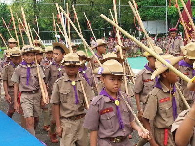 หัวข้อข่าว : พิธีทบทวนคำปฏิญาณและสวนสนาม เนื่องในวันคล้ายวันสถาปนาลูกเสือแห่งชาติ