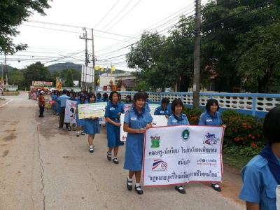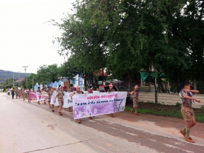 งานยาเสพติดร่วมกับกิจกรรมลูกเสือ-ยุวกาชาด เดินรณรงค์ต่อต้านยาเสพติด ลูกน้ำยุงลาย โรคเอดส์เพื่อเป็นการป้องกันโรค และให้ชุมชนห่างไกลยาเสพติด ภายในชุมชนบ้านบึงพร้าว ต.ชัยนาม อ.วังทอง จ.พิษณุโลก