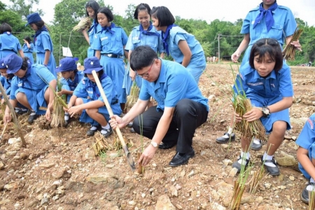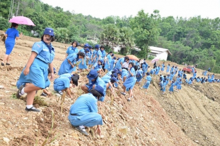หัวข้อข่าว : ยุวกาชาดร่วมปลูกหญ้าแฝกอ่างเก็บน้ำห้วยภูนก