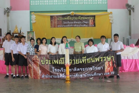 วันที่ 15 กรกฎาคม 2559 โรงเรียนชาติตระการวิทยาได้จัดกิจกรรมประเพณีถวายเทียนจำนำพรรษาขึ้น ณ หอประชุมศรีสงคราม โดยมีวัตถุประสงค์เพื่อให้นักเรียนได้สืบสานวัฒนธรรมการแห่เทียนเข้าพรรษาและถวายเป็นพุทธบูชา ธรรมบูชา และสังฆบูชา (ภาพ/ข่าว:งานประชาสัมพันธ์โรงเรียนชาติตระการวิทยา)