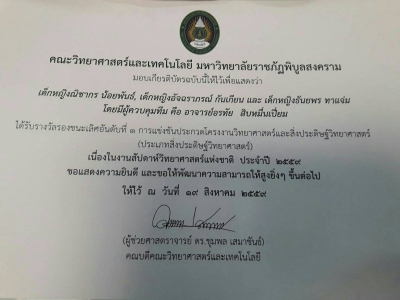 หัวข้อข่าว : รับรางวัลแข่งโครงงานวิทย์ ม.ราชภัฏ