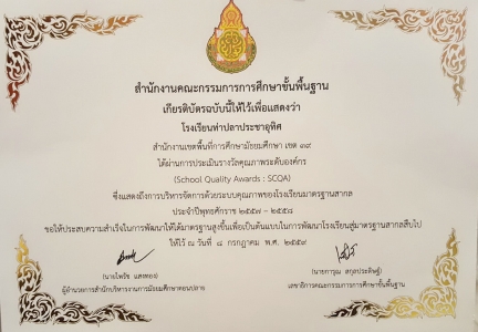 เมื่อวันที่ ๒๒ สิงหาคม ๒๕๕๙ นายจลัญ อินตายวง ผู้อำนวยการโรงเรียนนำคณะครู เข้ารับเกียรติบัตรโรงเรียนที่ได้รับการตรวจเยี่ยมและประเมินโรงเรียนมาตรฐานสากล World-Class Standard School Symposium ตามเกณฑ์รางวัลคุณภาพแห่งสำนักงานคณะกรรมการการศึกษาขั้นพื้นฐาน OBECQA และระดับองค์กร ScQA และร่วมงานเวทีศักยภาพในโรงเรียนมาตรฐานสากล World-Class Standard School Symposium ระหว่างวันที่ ๒๑-๒๓ สิงหาคม ๒๕๕๙ ณ โรงแรมไมด้า ทวารวดี แกรนด์ จังหวัดนครปฐม