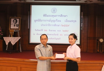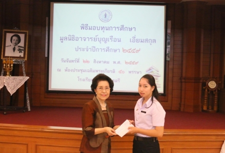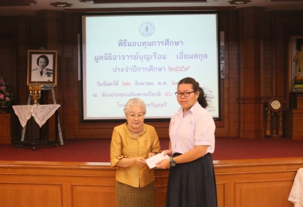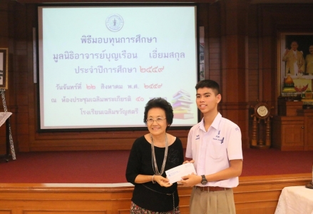 มูลนิธิอาจารย์บุญเรือน เอี่ยมสกุล โดยคุณสมชาย บุระมาน เป็นผู้แทนของมูลนิธิฯ มอบทุนการศึกษาให้แก่นักเรียนจังหวัดพิษณุโลก ประจำปีการศึกษา 2559 สำหรับสถานศึกษาระดับประถมศึกษาจนถึงระดับอุดมศึกษา ได้รับเกียรติจากอดีตผู้อำนวยการประสพศรี เตมียบุตร,คณะครู,รวมทั้งศิษย์เก่า ให้เกียรติมอบทุนการศึกษา ณ ห้องประชุมอาคารเฉลิมพระเกียติ 50 พรรษาฯ โรงเรียนเฉลิมขวัญสตรี เมื่อวันที่่ 22 สิงหาคม 2559 (ภาพ:อดิเรก/ข่าว:ประชาสัมพันธ์)