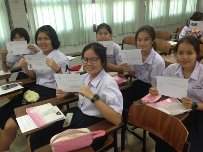 นักเรียนโครงการพัฒนาภาษาญี่ปุ่น ชั้นมัธยมศึกษาปีที่ 4 โรงเรียนเฉลิมขวัญสตรี ได้ถวายความอาลัยและสำนึกในพระมหากรุณาธิคุณ แด่พระบาทสมเด็จพระเจ้าอยู่หัวฯภูมิพลอดุลยเดช ด้วยการเขียนเรียงความเป็นภาษาญี่ปุ่นเกี่ยวกับพระราชกรณียกิจที่พระองค์ทรงงานเพื่อประชาชนชาวไทยตลอดรัชกาล (ภาพ:พีรดา/ข่าว:ประชาสัมพันธ์)