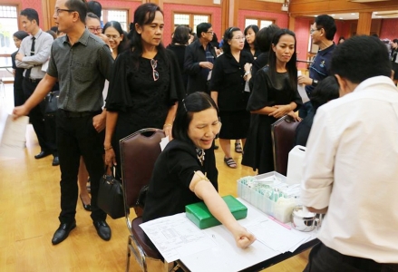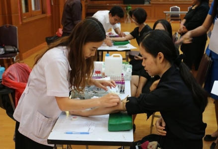 งานอนามัยโรงเรียนเฉลิมขวัญสตรี จัดกิจกรรมตรวจสุขภาพประจำปีให้แก่คณะครู บุคลากร ประจำปี 2559 โดยความร่วมมือจากคณะแพทย์ พยาบาลและเจ้าหน้าที่โรงพยาบาลพุทธชินราช ด้วยการตรวจวัดความดัน ซักประวัติ ชั่งน้ำหนัก วัดรอบเอว เจาะเลือด เอ็กซเรย์ปอด ณ หอประชุมราชานุเคราะห์ 3 โรงเรียนเฉลิมขวัญสตรี เมื่อวันที่่ 16 พฤศจิกายน 2559 (ภาพ:ข่าว/ประชาสัมพันธ์)
