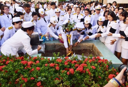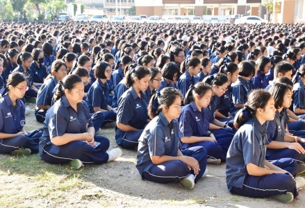 ว่าที่ ร.ต.บุญสืบ มะอิ รองผู้อำนวยการโรงเรียนเฉลิมขวัญสตรี นำคณะครู บุคลากรและนักเรียน ร่วมพิธีรวมพลังแห่งความภักดี ด้วยการปฏิญาณตนเป็นคนดีต่อชาติ ศาสนาและพระมหากษัตริย์ นั่งสมาธิเพื่อน้อมรำลึกพระมหากรุณาธิคุณในพระบาทสมเด็จพระปรมินทรมหาภูมิพล อดุลยเดช และะร่วมกันปลูกต้นไม้แห่งความภักดี ณ โรงเรียนเฉลิมขวัญสตรี เมื่อวันที่่ 22 พฤศจิกายน 2559 (ภาพ:กีรติ/ข่าว:ประชาสัมพันธ์)