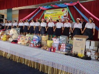 วันที่ 29 ธันวาคม 2559 นายประชุม ปิ่นสกุล ผู้อำนวยการโรงเรียน เปิดกิจกรรมวันคริสต์มาส ปีใหม่ และวันเด็กให้กับนักเรียน มีนางพัชราภรณ์ วรบุตร หัวหน้าฝ่ายบริหารวิชาการกล่าวรายงานวัตถุประสงค์ของการจัดกิจกรรม เพื่อส่งเสริมทักษะด้านภาษาและส่งเสริมให้นักเรียนเรียนรู้ประเพณีไทยและสากล กิจกรรมที่จัดขึ้นประกอบด้วย English Quiz,Card ,Bulletin Board ,Picture Dictation รวมถึงการขับร้องเพลงพระราชนิพนธ์ และมอบของขวัญปีใหม่ให้แก่นักเรียนทุกคน