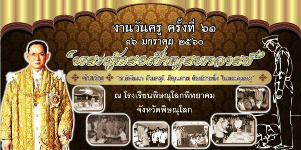 16 มกราคม 2560 นายยงค์ยุทธ รุ่งแจ้ง ผู้อำนวยการโรงเรียนน้ำรินพิทยาคม พร้อมครูอรรจนี ปัญญาสิทธิ์ ตัวแทนคณะครูโรงเรียนน้ำรินพิทยาคม เข้าร่วมกิจกรรมเนื่องในงานวันครู จัดโดยศึกษาธิการจังหวัดพิษณุโลก ณ หอประชุมนเรศวร โรงเรียนพิษณุโลกพิทยาคม เพื่อรำลึกในพระคุณของครูบาอาจารย์ ที่ประสิทธิ์ประสาทวิชาให้แก่ศิษย์ทุกคน ประจำปี 2560