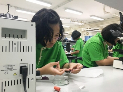 คณะครูกลุ่มสาระการเรียนรู้วิทยาศาสตาร์ โรงเรียนเฉลิมขวัญสตรี นำนักเรียนโครงการห้องเรียนพิเศษวิทยาศาสตร์ คณิตศาสตร์ เทคโนโลยีและสิ่งแวดล้อม (SMTE) ชั้นมัธยมศึกษาปีที่่ 1 ฝึกทักษะการใช้กล้องจุลทรรน์ ณ ห้องปฏิบัติการวิทยาศาสตร์ คณะวิทยาศาสตร์ มหาวิทยาลัยนเรศวร เมื่อวันที่่ 21 ธันวาคม 2560 (ภาพ:เนาวรัตน์/ข่าว:ประชาสัมพันธ์)