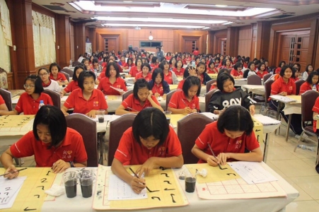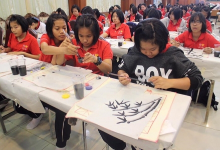 คณะครูโครงการพ้ฒนาทักษะภาษาจีน โรงเรียนเฉลิมขวัญสตรี จัดกิจกรรมอบรมการเขียนตัวพู่กันและวาดภาพจีน โดยวิทยากรท้องถิ่นจาก "บ้านหมึกจีน" จังหวัดพิษณุโลก สำหรับนักเรียนชั้นมัธยมศึกษาปีที่่ 1 และชั้นมัธยมศึกษาปีที่ 4 เมื่อวันที่ 19 กุมภาพันธ์ 2560 ณ ห้องโสตฯ อาคารเฉลิมพระเกียรติ โรงเรียนเฉลิมขวัญสตรี (ภาพ:ศูนย์ฯจีน/ข่าว:ประชาสัมพันธ์)