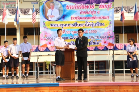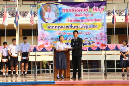 นายสิทธิพงษ์ ทับบุรี ศิษย์เก่ารุ่นที่6 เจ้าของเขาใหญ่รีสอร์ท จ.นครราชสีมา ตัวแทนศิษย์เก่า ร.ร.พรหมพิรามวิทยา มอบทุนการศึกษาให้รุ่นน้อง 25 ทุนๆละ 2,000 บาทรวม 50,000 บาท เนื่องในการจัดงานศิษย์เก่าปี2560 ครบ 42 ปีการก่อตั้งโรงเรียน