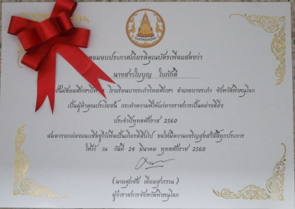 หัวข้อข่าว : นักเรียนโรงเรียนบางระกำวิทยศึกษา รับมอบประกาศเกียรติคุณบัตร