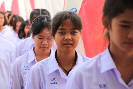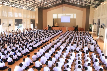 หัวข้อข่าว : โรงเรียนบางระกำวิทยศึกษา ได้จัดพิธี "ลอดธง" รับน้องสู่รั้ว "ขาว - แดง"