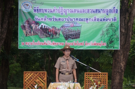 นายสุลักษณ์ กุลเจ๊ก หัวหน้ากิจกรรมพัฒนาผู้เรียน นำผู้กำกับลูกเสือและลูกเสือ-เนตรนารีโรงเรียนคันโช้งพิทยาคม ทำพิธีทบทวนคำปฏิญาณตนและสวนสนามลูกเสือ เนื่องในวันสถาปนาคณะลูกเสือแห่งชาติ (1 กรกฎาคม) โดยนางภิมุขสุดา ไวยกูล ผู้อำนวยการลูกเสือโรงเรียน เป็นประธาน เพื่อรำลึกถึงกิจการลูกเสือในประเทศไทย โดยจัดกิจกรรมทบทวนคำปฏิญาณตนและสวนสนามลูกเสือ และนำลูกเสือ-เนตรนารีบำเพ็ญประโยชน์ (ภาพ:ข่าว/ธีระยุทธ์ สุวิเชียร)