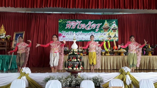 โรงเรียนวังทองพิทยาคมจัดพิธีไหว้ครูและเจิมหนังสือ ประจำปีการศึกษา 2560โดย ดร.ประชุม ปิ่นสกุล ผู้อำนวยการโรงเรียน เพื่อให้นักเรียนได้มีโอกาสแสดงความเคารพแด่ครูผู้ประสาทวิชา และเป็นการปฏิบัติตามธรรมเนียมประเพณีทางการศึกษา บรรยากาศเต็มไปด้วยความสงบ อบอุ่น และมีพลังแห่งความรักระหว่างครูและนักเรียน