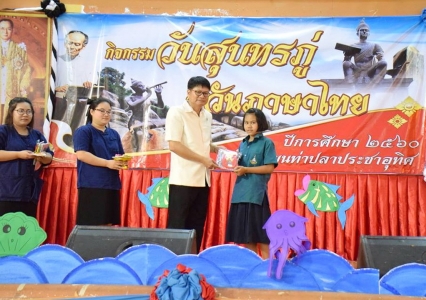 วันที่ ๓๐ มิถุนายน ๒๕๖๐ กลุ่มสาระการเรียนรู้ภาษาไทยได้จัดกิจกรรมวันสุนทรภู่สู่วันภาษาไทยแห่งชาติ โดยนายจลัญ อินตายวง ผู้อำนวยการโรงเรียนเป็นประธานในพิธี เนื่องในวันที่ ๒๖ มิถุนายน ของทุกปีเป็นวันรำลึกถึงสุนทรภู่ยอดกวีเอกของไทย และวันที่ ๒๙ กรกฎาคม ของทุกปี เป็นวันภาษาไทยแห่งชาติ เพื่อเป็นการเชิดชูเกียรติและเผยแพร่ผลงานของสุนทรภู่ เพื่อกระตุ้นให้นักเรียนเกิดความซาบซึ้ง มีจิตสำนึกให้คนไทยตะหนักถึงคุณค่าและความสำคัญของภาษาไทยซึ่งถือเป็นเอกลักษณ์ที่สำคัญอย่างหนึ่งของชาติ ณ หอประชุมน่านนที โรงเรียนท่าปลาประชาอุทิศ