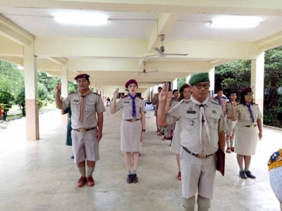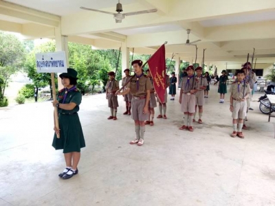 27 กรกฎาคม 2460 นางเรณู บุญเสรฐ ผู้อำนวยการลูกเสือโรงเรียนสฤษดิ์เสนาพิทยามอบหมายให้นายผจงเกียรติ จีนสลุต รองผู้อำนวยการลูกเสือโรงเรียนฯ นำผู้กำกับลูกเสือสามัญรุ่นใหญ่ ลูกเสือและเนตรนารี จัดพิธีถวายพระพรชัยมงคลและทบทวนคำปฏิญาณและสวนสนาม เนื่องในโอกาสเฉลิมพระชนมพรรษา 65 พรรษา สมเด็จพระเจ้าอยู่หัวมหาวชิราลงกรณ บดินทรเทพยวรางกูร ณ โรงเรียนสฤษดิ์เสนาพิทยาคม ตำบลวังนกแอ่น อำเภอวังทอง จังหวัดพิษณุโลก ภาพ/ข่าว : นางปฐมาพร แสงอาทิตย์ ประชาสัมพันธ์โรงเรียน