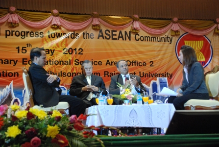 ดร.เบญจลักษณ์ น้ำฟ้า , ดร.พิษณุ ตุลสุข รองเลขาธิการคณะกรรมการการศึกษาขั้นพื้นฐาน ประธานพิธีเปิดงานการศึกษาไทย ก้าวไกลสู่อาเซียน สพป.พิษณุโลก เขต 2 โดยมี นายวิวัฒน์ อ้นน่วม ผอ.สพป.พิษณุโลก เขต 2 กล่าวรายงาน วันที่ 15 พฤษภาคม 2555 ณ หอประชุมศรีวชิรโชติ มหาวิทยาลัยราชภัฎพิบูลสงครามพิษณุโลก โดยมี ดร.สมเกียรติ บุญรอด ผอ.สพม.เขต 39 และคณะกรรมการ อ.ก.ค.ศ. เขต ผู้บริหารโรงเรียนมัธยม คณะครู เข้าร่วมงานดังกล่าว ทั้งนี้ รองเลขาธิการ กพฐ. ได้ร่วมเสวนาทางวิชาการ และบรรยายพิเศษหลักสูตรอาเซียนสู่สถานศึกษา พร้อมเยี่ยมชมนิทรรศการอาเซียนของโรงเรียนในจังหวัดพิษณุโลก ก่อนเริ่มงานได้ชมพิธีเปิดอย่างเป็นทางการ โดยมีการแสดงของนักเรียน ซึ่งรอง ผอ.สพป พิษณุโลก 2 ผอ.กลุ่ม บุคลากร พร้อมใจร่วมแต่งกายในชาติต่างๆ ของอาเซียน / พรทิพย เทศแจ่ม : ภาพ ข่าว