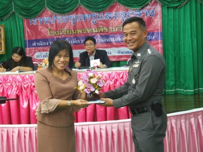 วันจันทร์ที่ 14 พ.ค. 2555 โรงเรียนพรหมพิรามวิทยานำโดย นายบุญศักดิ์ ไมตรีจิตร์ ผู้อำนวยการโรงเรียนพรหมพิรามวิทยา เป็นประธานประชุมคณะครูและบุคลากรทางการศึกษาเพื่อชี้แจงซักซ้อมการปฏิบัติงานก่อนเปิดเรียนภาคเรียนที่ 1และได้เชิญคณะทำงานจากสถานีตำรวจภูธรพรหมพิรามเพื่อมาให้ความรู้เกี่ยวกับยาเสพติดเพื่อแก้ไขและบูรณาการช่วยเหลือนักเรียน และให้เกียรติมอบช่อดอกไม้แสดงความยินดีกับครูที่ได้รางวัล ครูสอนดีของคุรุสภา ณ ห้องโสตฯโรงเรียนพรหมพิรามวิทยา / ข่าวภาพ : พลนี ศรีอินทร์