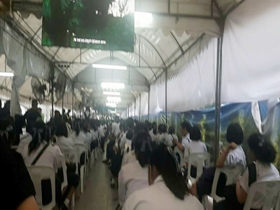 ดร.นพเก้า ทองชุมสิน รองผู้อำนวยการฝ่ายบริหารงานกิจการนักเรียนโรงเรียนเฉลิมขวัญสตรี,นายนิโรจน์ นนท์นา หัวหน้างานกิจกรรมนักเรียนและชุมชน พร้อมด้วยคณะครูที่ปรึกษาระดับชั้นมัธยมศึกษาปีที่ 5 นำนักเรียนชั้นมัธยมศึกษาปีที่ 5.5,5.6,5.8,5.9 ชุดที่่ 3 จำนวน 176 คน เข้ากราบสักการะพระบรมศพพระบาทสมเด็จพระปรมินทรมหาภูมิพลอดุลยเดช มหิตลาธิเบศรรามาธิบดีจักรีนฤบดินทรสยามินทราธิราชบรมนาถบพิตร ณ พระที่นั่งดุสิตมหาปราสาท ในพระบรมมหาราชวัง เมื่อวันเสาร์ที่ 2 กันยายน 2560 คณะครูและนักเรียนทุกคนขอน้อมศิระกราน กราบแทบพระยุคลบาทด้วยสำนึกในพระมหากรุณาธิคุณเป็นล้นพ้นอันหาที่สุดมิได้ (ภาพ:ปฐมา/ข่าว:ประชาสัมพันธ์)