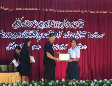 วันที่ 13 กันยายน 2560 ดร.อรสา ทรงศรี ผู้อำนวยการโรงเรียนบ้านโคกวิทยาคม มอบหมายให้ นางพรนภา ติคำ ครูชำนาญการโรงเรียนบ้านโคกวิทยาคม นำนักเรียนเข้าร่วมงานวันเยาวชนแห่งชาติ ประจำปี 2560 ณ ศาลาประชาคม ศาลากลางจังหวัดอุตรดิตถ์ ประธานในพิธี คือ นายสุมิตร เกิดกล่ำ รองผู้ว่าราชการจังหวัดอุตรดิตถ์ ได้มอบรางวัลให้กับตัวแทนนักเรียนที่ได้เข้าร่วมการแข่งขันเยาวชนดี ศรีอุตรดิตถ์ปี 2560 ตัวแทนนักเรียนโรงเรียนบ้านโคกวิทยาคมได้รับรางวัลชมเชย พร้อมเกียรติบัตรและเงิน1000 บาท มีทั้งหมด 3 ด้าน คือ ได้รับการคัดเลือกเป็น เยาวชนคนดีศรีอุตรดิตถ์ ประจำปี 2560 ระดับชมเชย #ด้านกีฬา ได้แก่ นางสาวธัญชนก เสนา ได้รับการคัดเลือกเป็น เยาวชนคนดีศรีอุตรดิตถ์ ประจำปี 2560 ระดับชมเชย #ด้านบำเพ็ญประโยชน์ต่อสังคมและคุณธรรมจริยธรรม ได้แก่ นางสาวนพมาศ มาอุ่น และนางสาววราภร วงษ์ทัน ได้รับการคัดเลือกเป็น เยาวชนคนดีศรีอุตรดิตถ์ ประจำปี 2560 ระดับชมเชย #ด้านผู้นำเยาวชนและความรู้ความสามารถ ได้แก่ นางสาวพรพิมล มุกดาจันทร์, นางสาววชิรญาณ์ ปันแดน, นางสาวปิยะฉัตร จันโส และนางสาวพิชชานันท์ จันทร์ทุม