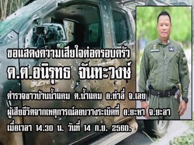 วันที่ 18 กันยายน 2560 ดร.พยัพ อนันนิล ผู้อำนวยการโรงเรียนเฉลิมขวัญสตรี พร้อมด้วยฝ่ายบริหาร ตัวแทนคณะครูและตัวแทนนักเรียน ร่วมพิธีพระราชทานเพลิงศพ ด.ต.อนิรุทธ จันทะวงษ์ หรือดาบยักษ์ ผู้ปกครองนางสาวพัทธนันท์ จันทะวงษ์ นักเรียนชั้นมัธยมศึกษาปีที่ 6.8 โรงเรียนเฉลิมขวัญสตรี ณ วัดศรีโสภณ บ้านน้ำแคม ตำบลน้ำแคม อำเภอท่าลี่ จังหวัดเลย ซึ่งไปปฏิบัติราชการเจ้าหน้าที่ตำรวจเก็บกู้วัตถุระเบิด เสียชีวิตจากเหตุการณ์ลอบวางระเบิดที่อำเภอยะหา จังหวัดยะลา เมื่อวันที่ 14 กันยายน 2560 ที่ผ่านมา ในนามของฝ่ายบริหาร คณะครู บุคลากรทางการศึกษาและนักเรียนโรงเรียนเฉลิมขวัญสตรีทุกคน ขอร่วมไว้อาลัยและสดุดีในความกล้าหาญและเสียสละ ขออานิสงส์แห่งคุณงามความดีที่ได้ปฏิบัติหน้าที่เพื่อปกป้องประเทศชาติ จงเป็นประทีปส่องนำดวงวิญญาณของ ด.ต.อนิรุทธ จันทะวงษ์ ไปสู่สุขคติด้วยเทอญ(ภาพ:ปฐมา,ศิริรัตน์/ข่าว:ประชาสัมพันธ์)